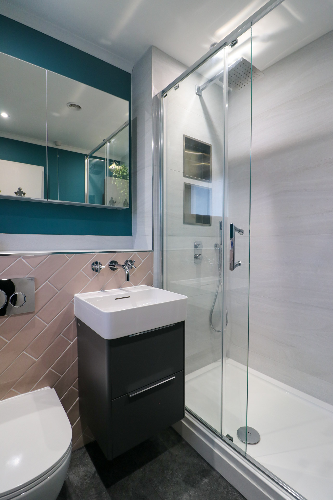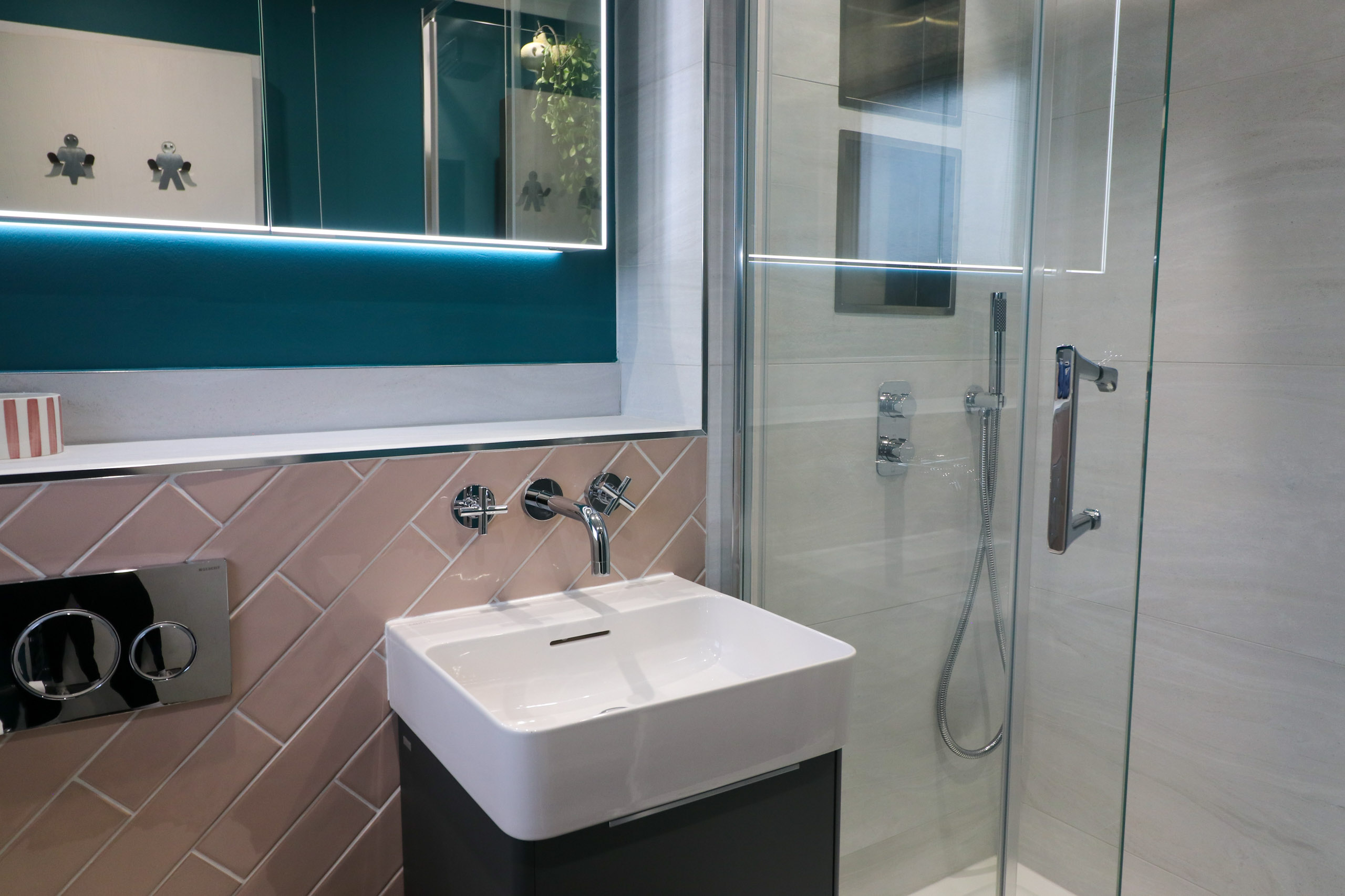 On the wall above the basin unit and sanitaryware (also from Laufen), a perfectly sized Hib illuminated mirror cabinet was installed, enhancing the rooms design and functionality.