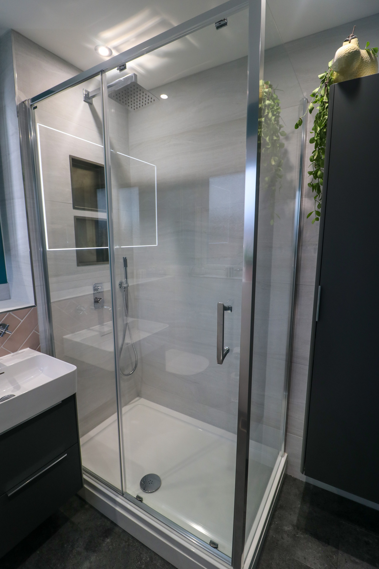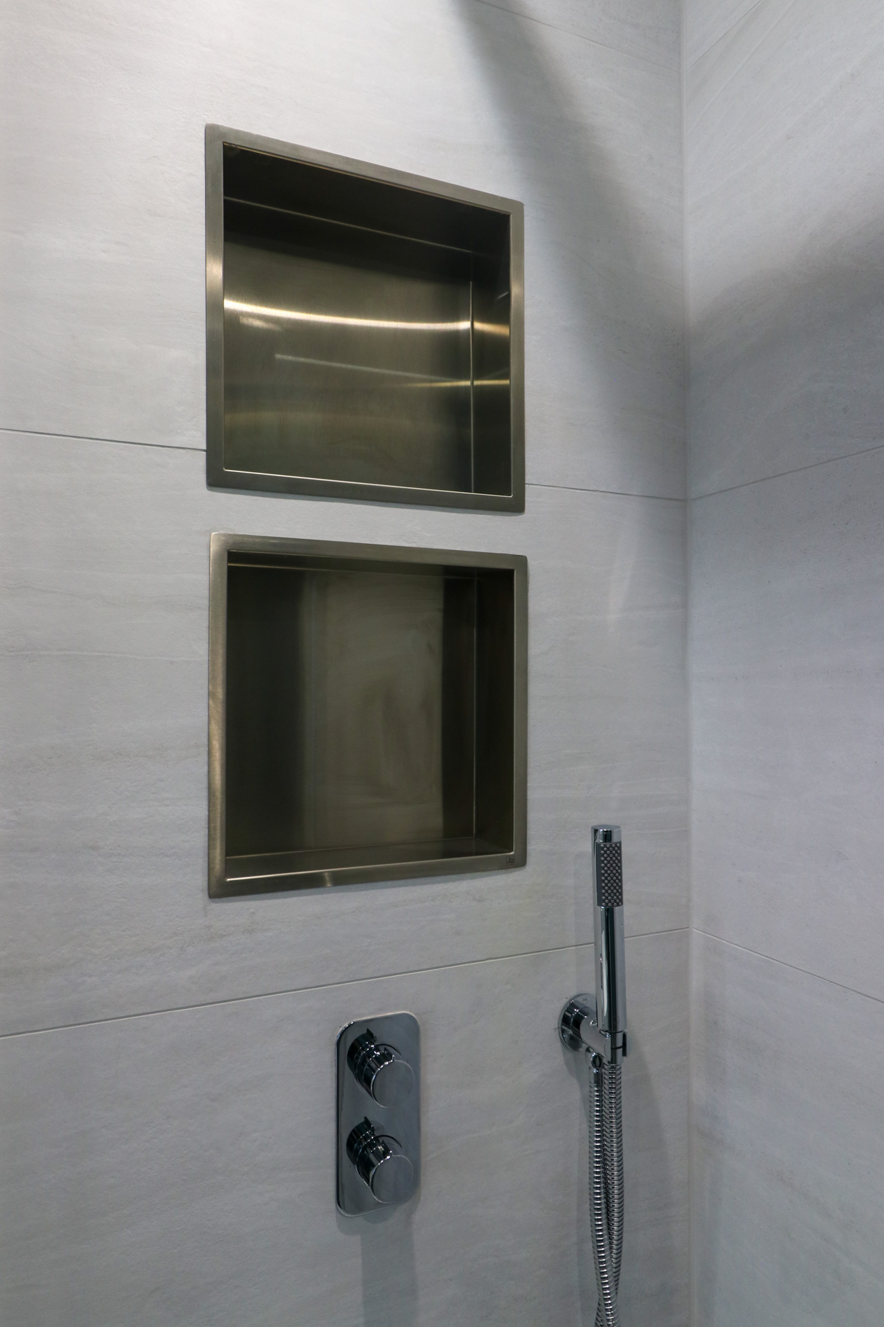 A storage in their shower was to have niches built into the new shower, perfect for storing bottles and products.
