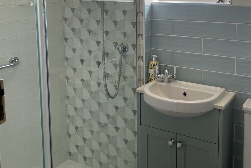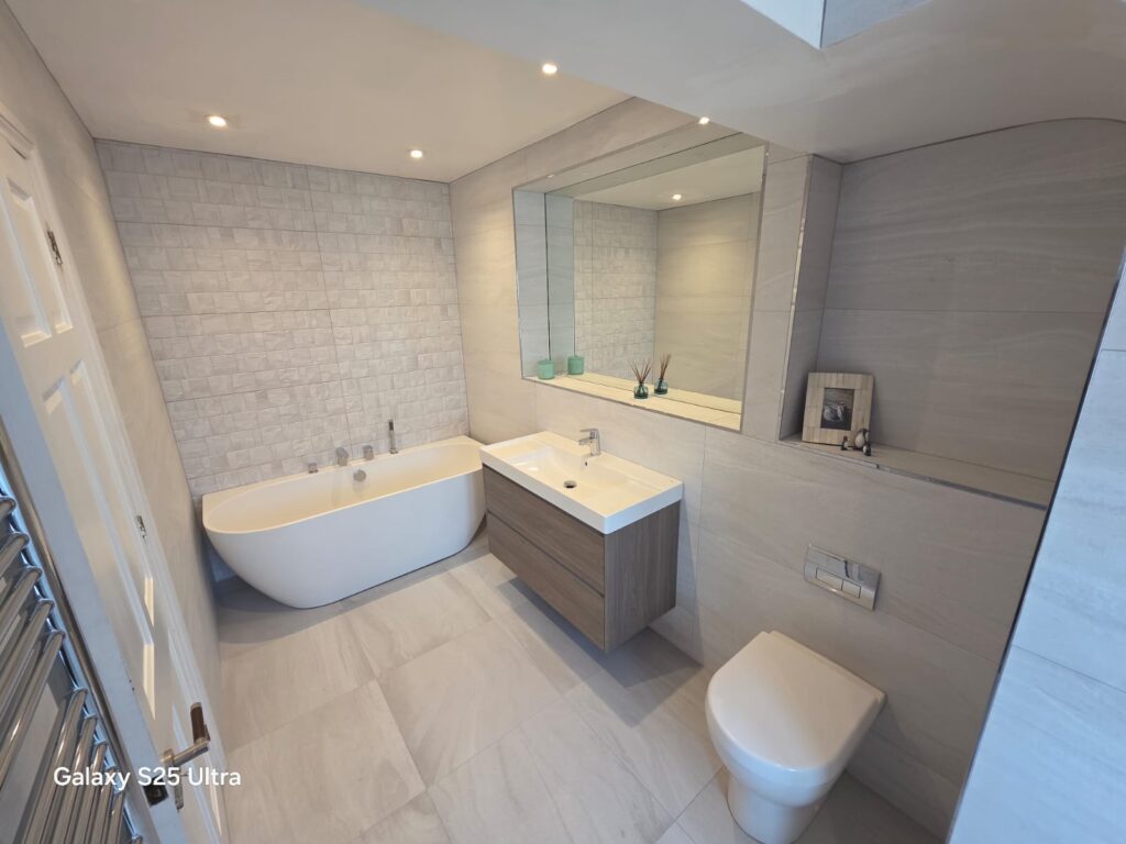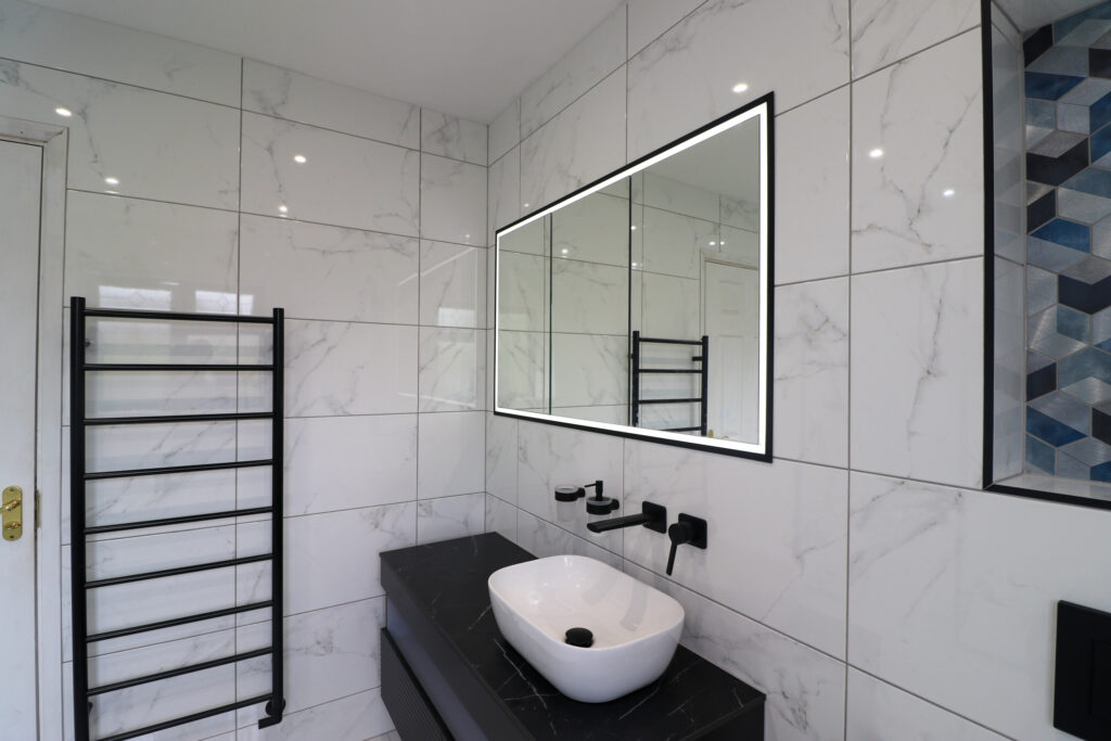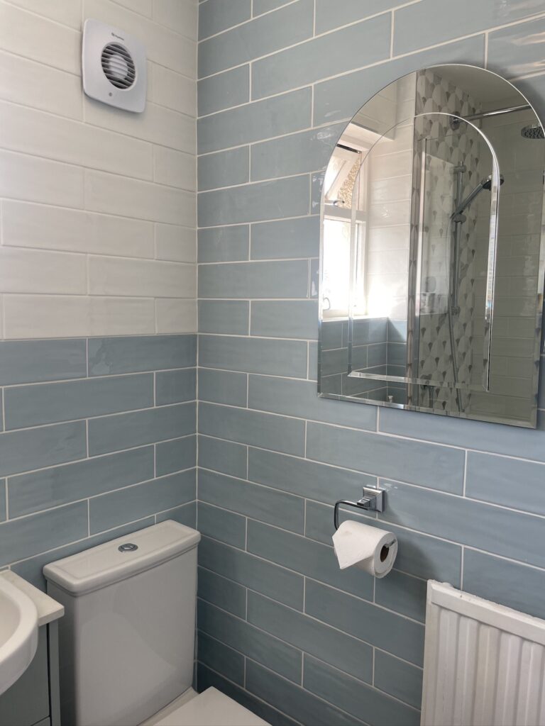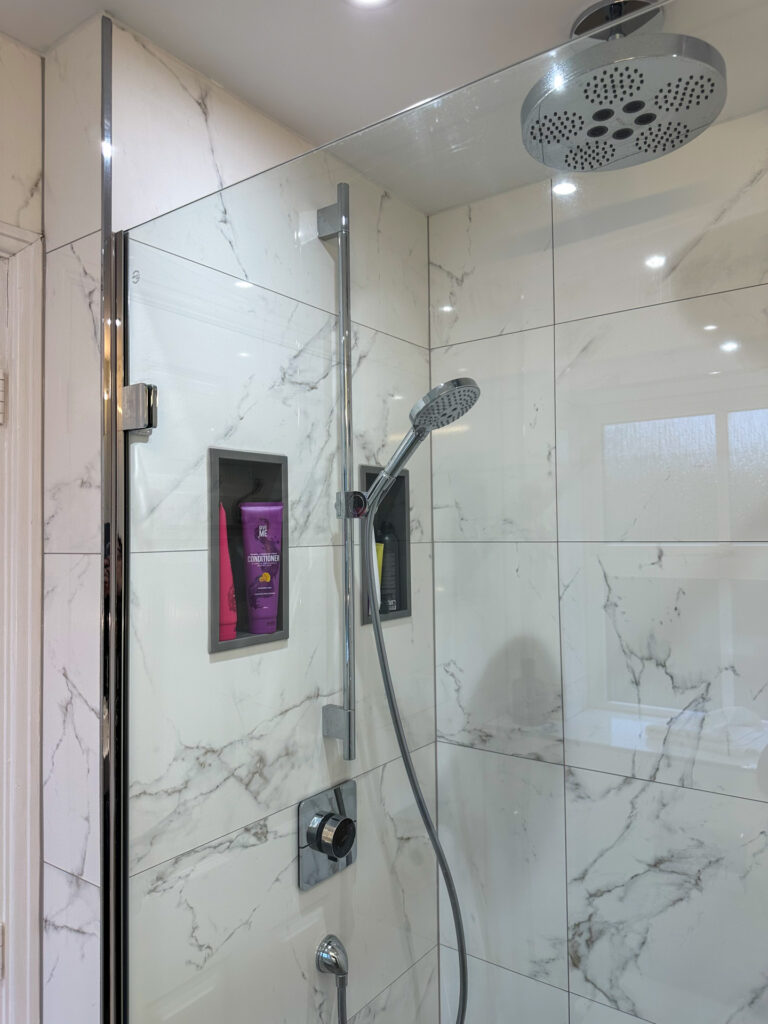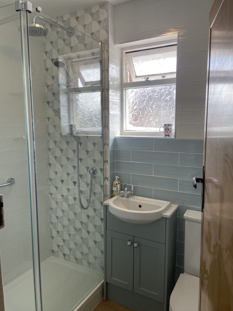 For their second project, our client wanted a fully tiled room with a large walk-in shower and for the room to be modernised throughout.